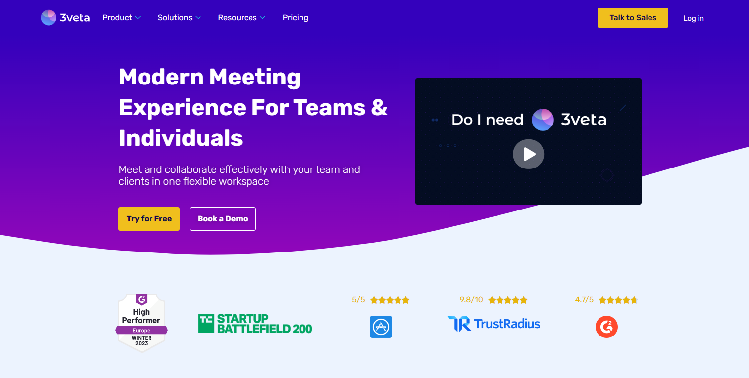 3veta is an online video conferencing tool for teams and individuals who need to communicate and collaborate remotely. Raise your performance with fuss-free scheduling, branded video calls, and interactive meetings.